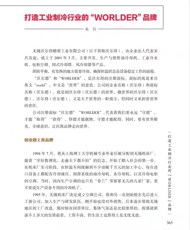 沃爾得公司能夠錄選載入此史料集,倍感殊榮,深受鼓舞!